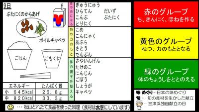 給食は、みなさんが元気ですくすく育つように、栄養を考えて作っています。残さずしっかり食べてくださいね。